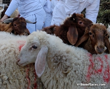 The Samaritans (who today number no more than 600 people) still celebrate Passover, which includes sacrificing lambs. The lambs in this photo are being readied for sacrifice. Samaritans are mentioned several times in the Gospels and Acts.