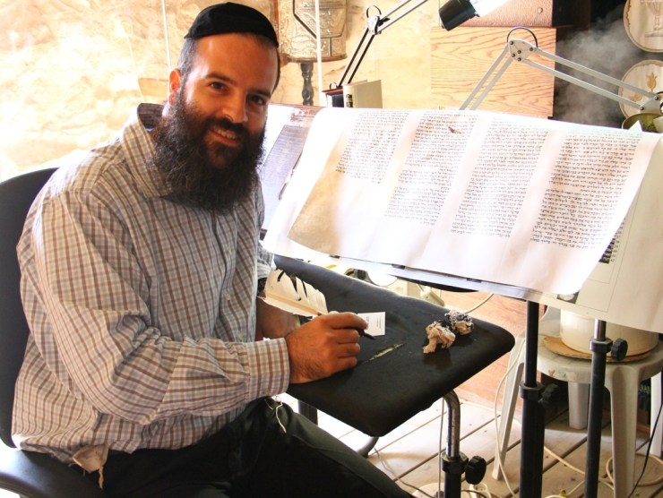 A Jewish scribe writing the Torah by hand.