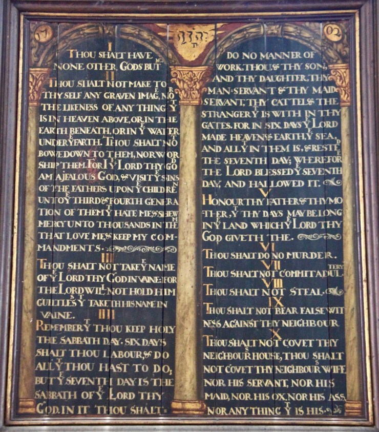 A painting of the Ten Commandments, dated 1702, in Christchurch Priory, Dorset, England.