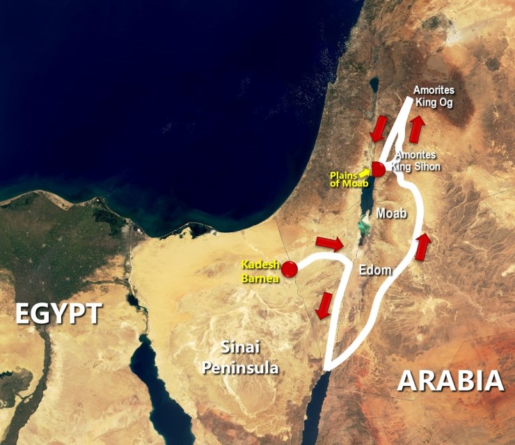 The route of Israel’s journey from Kadesh-barnea to the Plains of Moab.