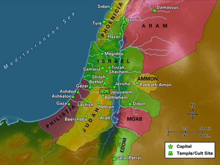 Map showing the divided kingdom of Israel and Judah, and the surrounding nations.