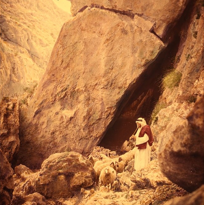 David wrote “The LORD is my shepherd, I lack nothing. He makes me lie down in green pastures, he leads me beside quiet waters, he refreshes my soul.” (Psalm 23:1-3). This photograph (taken between 1900 and 1920) is from a set illustrating Psalm 23.