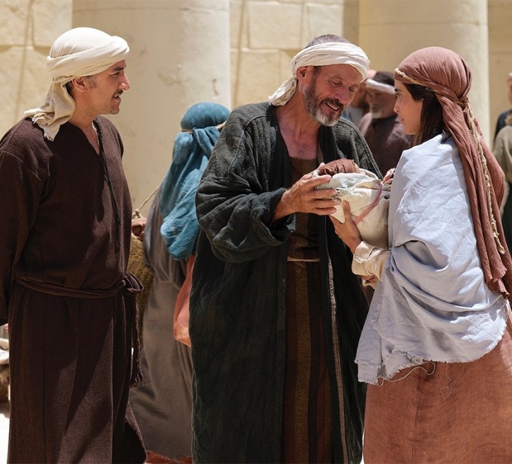 Zechariah holding his baby son John. We read, “Zechariah was filled with the Holy Spirit and prophesied, saying, ‘. . . you, child, will be called the prophet of the Most High; for you will go before the Lord to prepare his ways, to give knowledge of salvation to his people in the forgiveness of their sins, . . . .'” (Luke 1:67, 76-77).