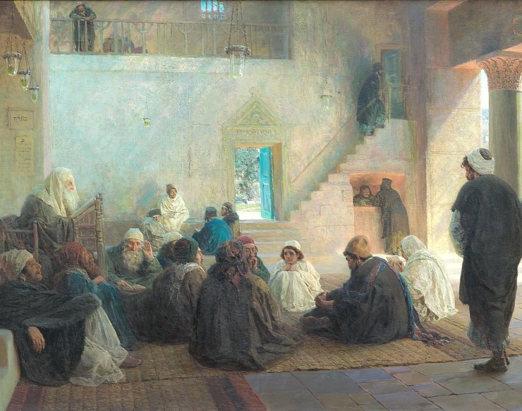 Detail from Christ Among The Doctors painted by Vasily Polenov. Mary and Joseph found Jesus ” in the temple, sitting among the teachers, listening to them and asking them questions” (Luke 2:46).