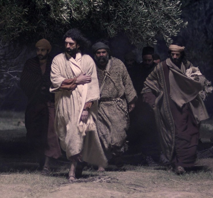 Jesus and His disciples enter the Garden of Gethsemane after the Last Supper―a still from a video produced by the LUMO Project.