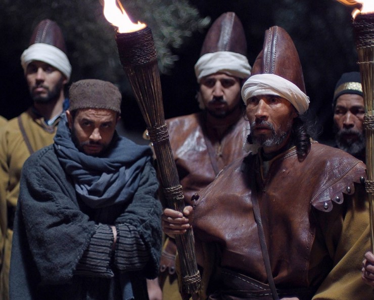 Judas arrives in the Garden of Gethsemane, with the arresting party sent by the Jewish authorities. A still from a video produced by the LUMO Project.