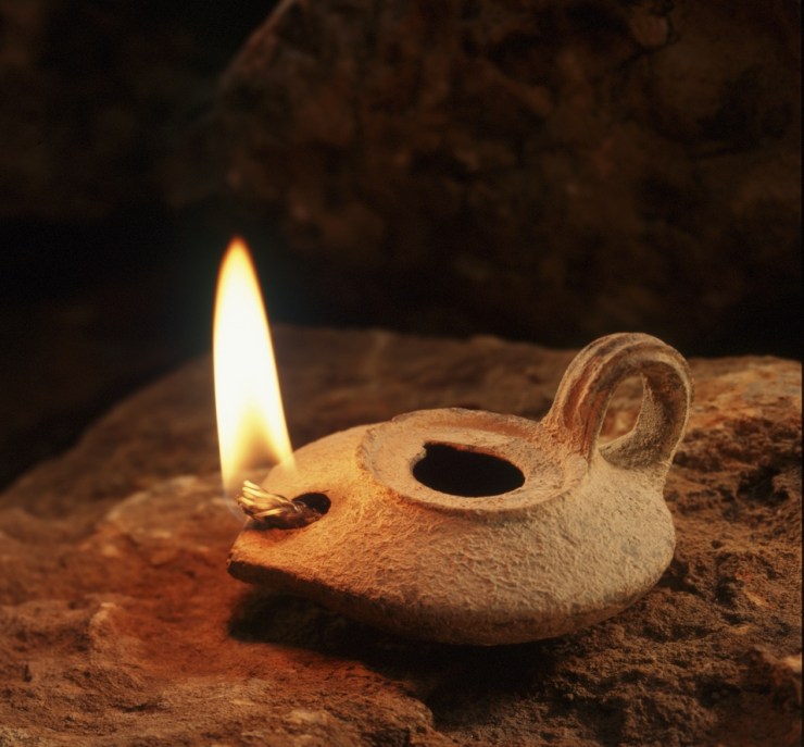 An oil lamp of an ancient design, one of the kinds that would have been used in the apostle John’s day. Each of the seven churches is symbolised as a golden lampstand (Revelation 1:20)―a stand upon which an oil lamp like this one would be placed. God intended each church to carry the light of His presence and truth in a darkened world.