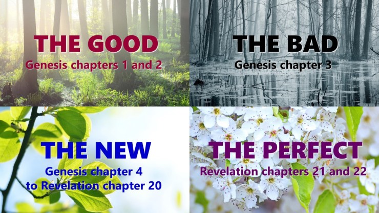 In Part 1 we said that the Bible story is a drama in four acts―the Good, the Bad, the New, and the Perfect. Now, at last, we begin Act 4, the Perfect. God transforms Heaven and Earth; His people now live with Him on the renewed Earth. Creation will never be troubled by Satan or sin again.
